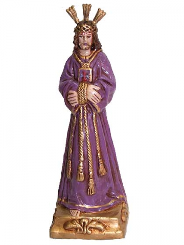 Cristo Cautivo. Barro policromado en 20 cm con túnica morada realizado por Lozano.