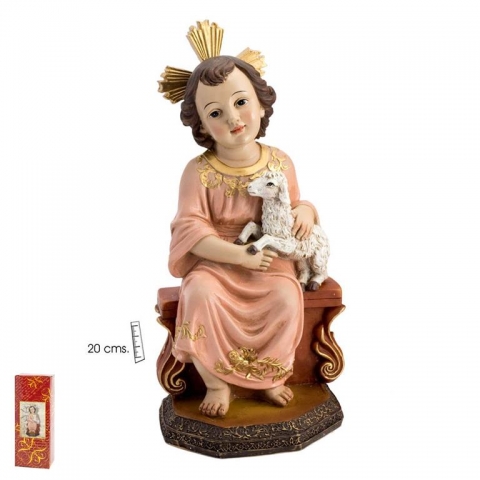 Niño Jesus sentado con oveja en resina policromada. Medidas 20cm.Diseño de Giordano di Ponzano.