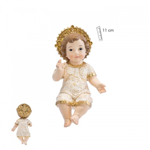 Child Jesus dressed with a polychrome resin crown. Available in various sizes.