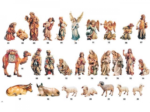 Nativity set 12pcs wood lightly colored Figures of 18cms