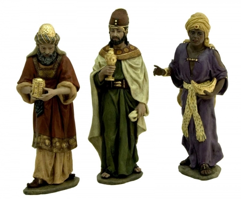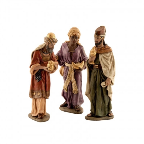 Wise Men worshiping. Group 3 figures 19 cm designed by J.Mayo. Ceramic paste and acrylic polychrome modeled by the artistic workshop Mayo.