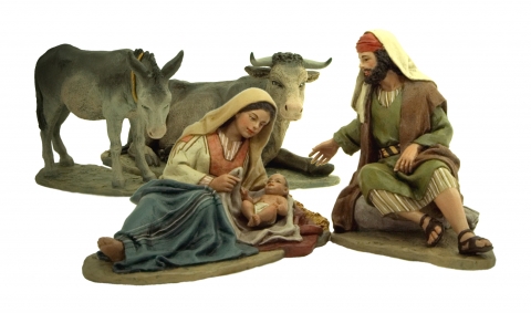 Natividad nº 4 de 19 cm 2 piezas .Pasta de cerámica y policromia acrilica. Diseñado por el taller artistico de Mayo. Sin Animales.