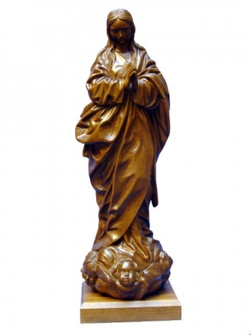 Purísima de Alonso Cano tallada a mano. Madera tallada según la tradición artesanal del Valle de Gardena.
