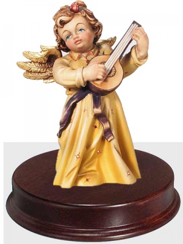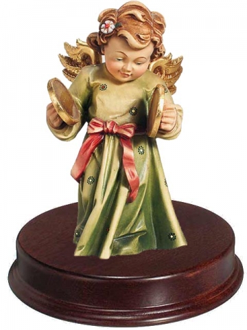 Angel on music-box wood lightly colored .Figures of 20cms