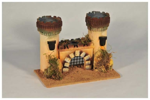 Castillo dos torres redondas nº 306. Medidas:31x18x24 cm. En corcho, de Belenes Galán.