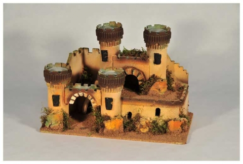 Castillo cuatro torres redondas nº 313. Medidas:38x22x26 cm. En corcho, de Belenes Galán.