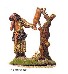 Grupo desollando un cordero con pastor y árbol 12 cm.