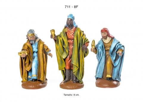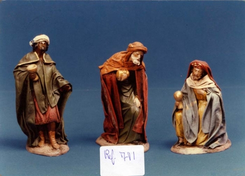 Adoring kings of hebrew style in mud with cloth, series 711. Made by Serrano in 14 cm.