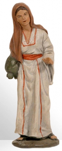 Shepherdess standing with offering in 14 cms. No. 2 in terracotta and acrylic polychrome modeled by the artist's workshop Mayo.