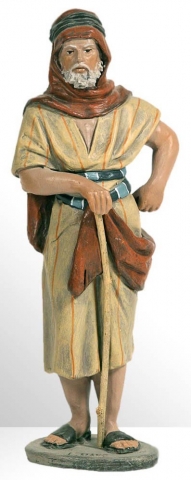 Pastor anciano con cayao en 14 cms .Nº 3 en terracota y policromía acrílica modelada por el taller artístico Mayo.