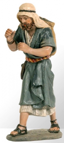 Shepherd with load on back in 14 cms. No. 16 in terracotta and acrylic polychrome modeled by the artist's workshop Mayo.