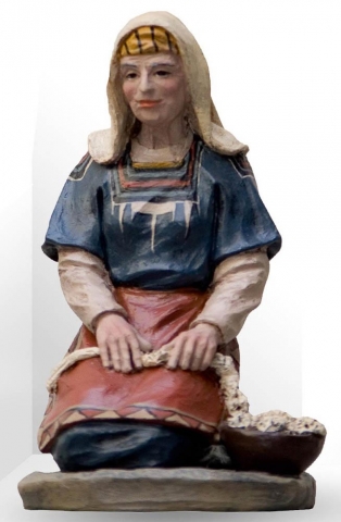 Pastora cardando lana en 14 cms en terracota y policromía acrílica modelada por el taller artístico Mayo.