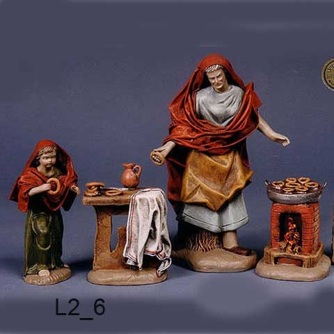 Grupo 6 : Pastora con niño y mesa haciendo buñuelos. Serie L2 en 15 cm. Diseño de Decorarte.