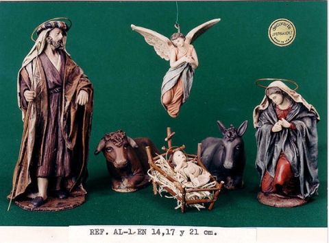 Hebrew Birth Model AL19 at 17 cm. Design decorate clay. 5 Figures.