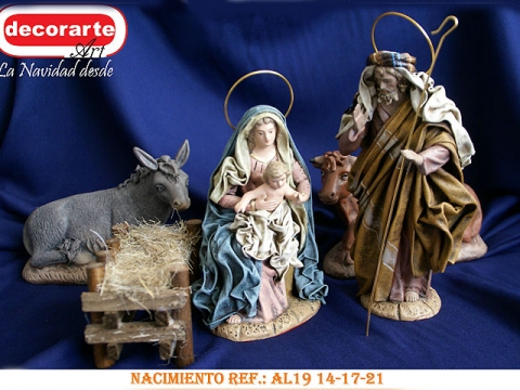 Nacimiento Hebreo Modelo AL19 en 17 cm. Diseño de Decorarte en barro. 5 Figuras.