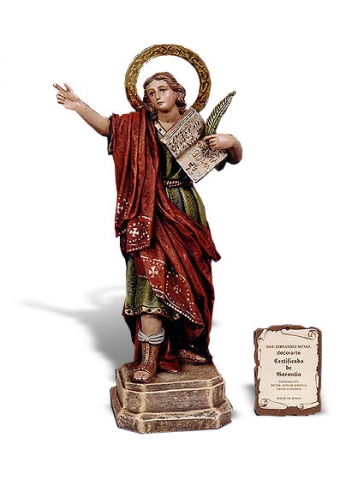 San Pancracio en barro enlienzado serie AS en 17 cm. Diseño de Decorarte en barro.