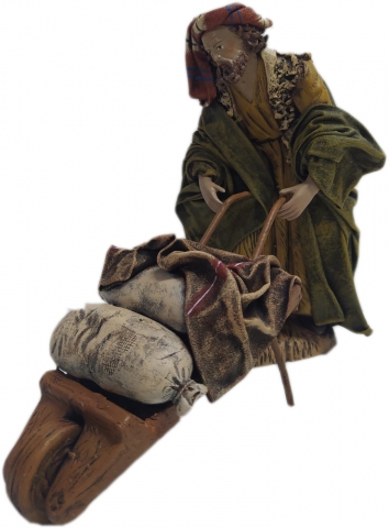 Group 15 - Hebrew shepherd with cart in 21 cm. Decorarte design in clay with fabrics.
