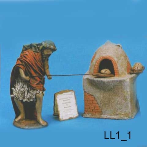 Grupo Nº 1 : Panadero con horno. Serie LL1 en barro con telas en 21 cm. Diseño de Decorarte.
