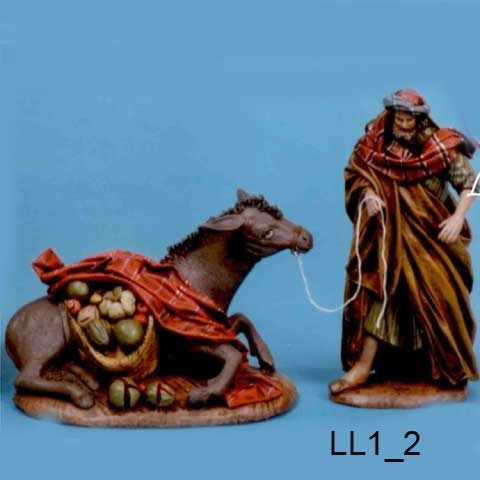Group 5: Muleteer and ass with pitchers. Series LL1 fabrics in mud at 21 cm. Decorarte Design.