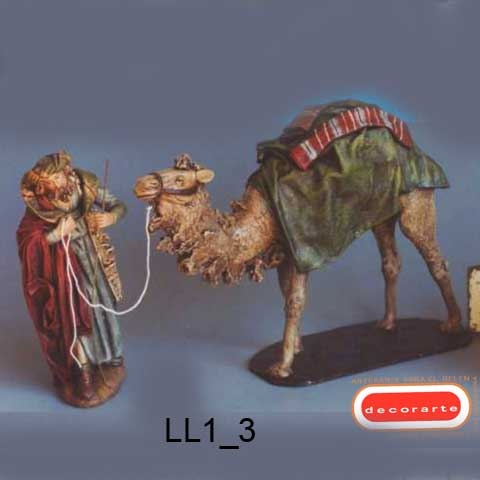 Grupo Nº 3 : Pastor con camello. Serie LL1 en barro con telas en 21 cm. Diseño de Decorarte.