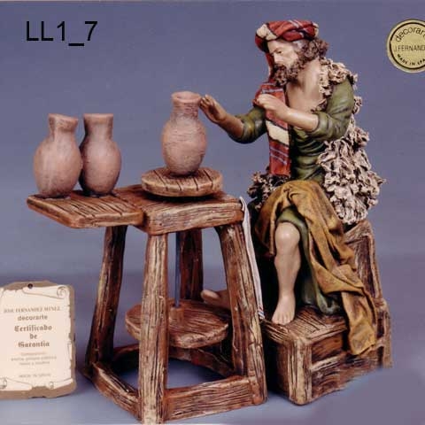 Grupo Nº 7 : Hebreo en torno de alfarero. Serie LL1 en barro con telas en 21 cm. Diseño de Decorarte.