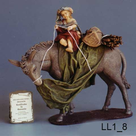 Grupo Nº 8 : Niño en burra. Serie LL1 en barro con telas en 21 cm. Diseño de Decorarte.