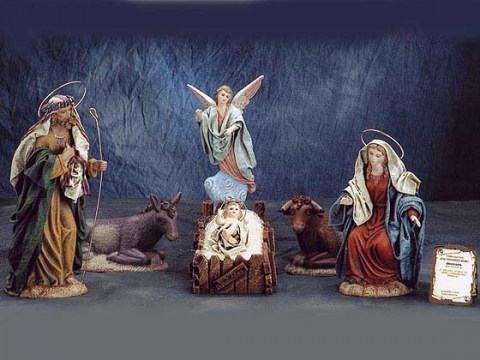 Hebrew Birth Model AL19 at 21 cm. Design decorate clay. 5 Figures.