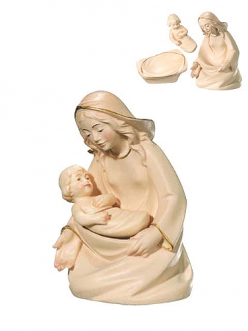 Virgen Maria en madera natural con oro. Figuras de 22cm.