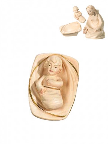 Niño Jesus con cuna en madera con oro. Figuras de 22cm.