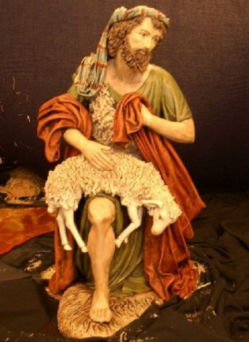 Shepherd worshiping with lamb. DL5 Model Series in 65 cm. Design decorate clay.