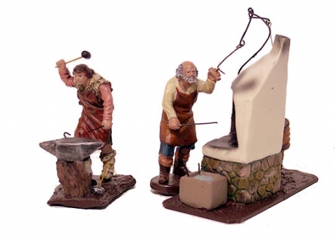 Grupo de herreros de Almansa . barro en 8 cm.