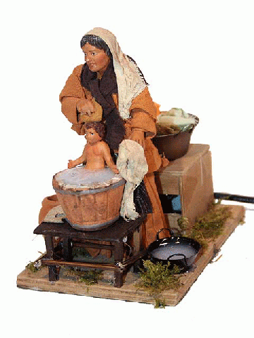 Mujer lavando niño en 14 cm. Diseñado por Nicla.