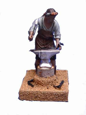 Forge with blacksmith with motor in mud with polychrome cloth of Belenes Galán in 17 cm.