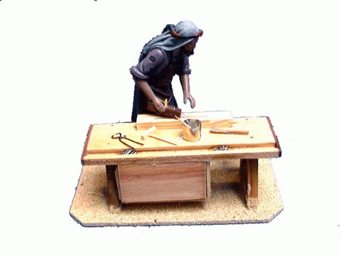 Carpintero con motor en barro con tela policromado de Belenes Galán. Disponible en varios tamaños.
