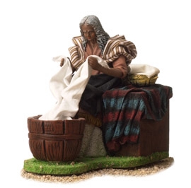 Group well shepherdess giving water to the boy with motor 20 cm.
