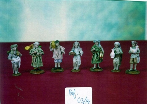 Niños con ofrenda surtidos en 21 cm. Modelo 003 . Diseño de Serrano en barro. Precio Unidad.