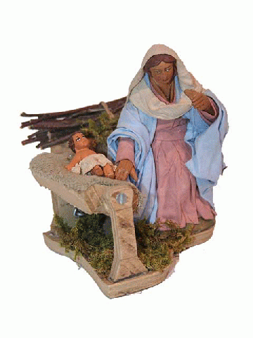 Virgen con niño en cuna con movimiento de 12 cm.