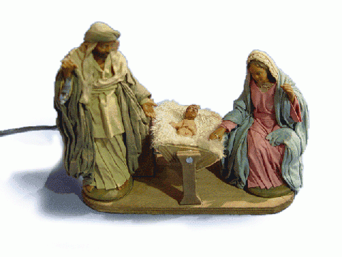 Nativity with light and movement in 15 cm.