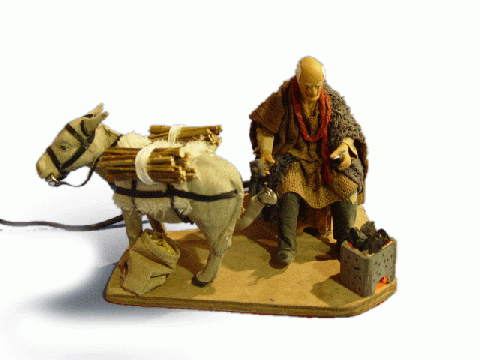 Shepherd shoing donkey with forge effect fire of 14 cm.