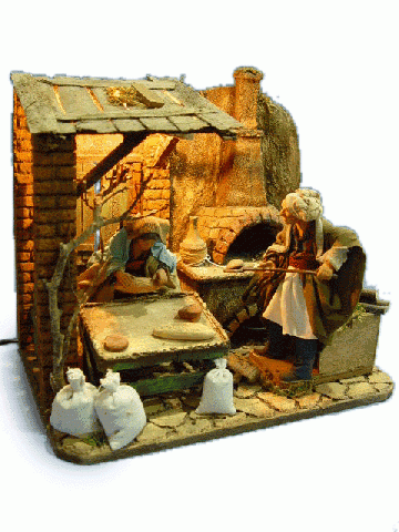 Grupo Pastores Panaderia con luces y con movimiento en 14 cm.