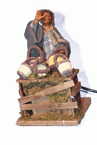 Launderette of Cheeses in terracotta and cloth with movement. 14 cms.