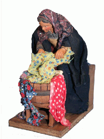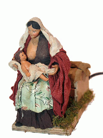 Shepherdess painting pottery with clay motor with polychrome cloth from Nativity Scenes. Size 14cm.