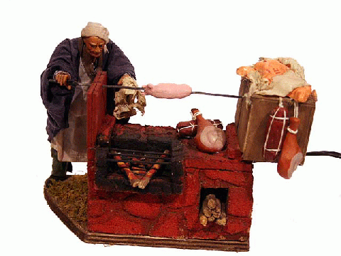 Hombre asando cochinillo.