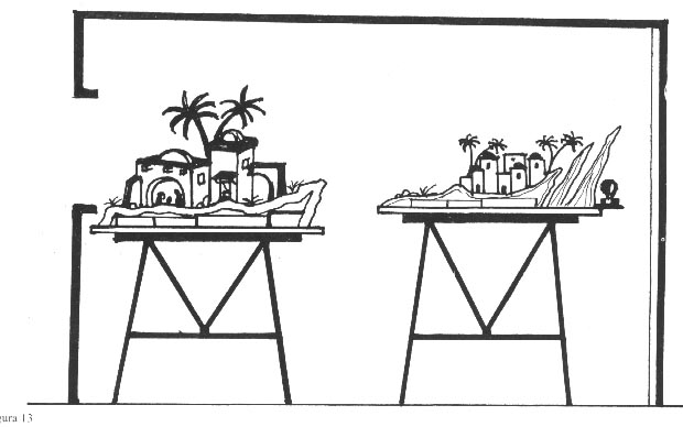 Podemos construir el celaje en tela, papel, táblex, material plástico..., procurando siempre como norma elemental, evitar antiestéticas e ilógicas arrugas y confiriendo siempre a las esquinas una terminación curva.