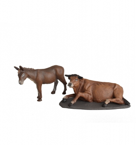 Burrito y Buey. Modelo 7003 en 7 cm. Diseño de Ángeles Camara realizado en pasta cerámica y decorado con pintura acrílica.
