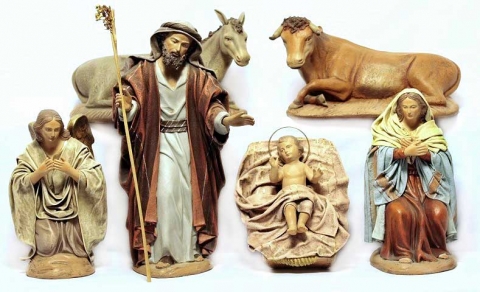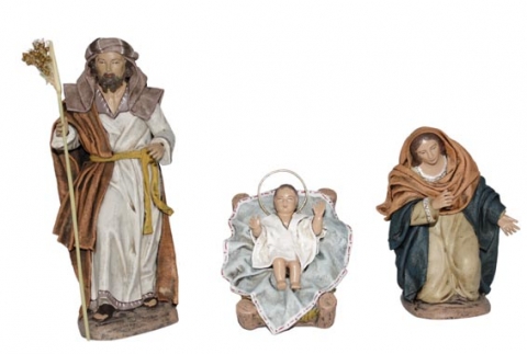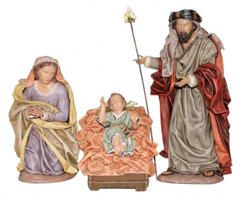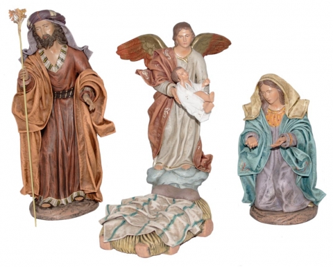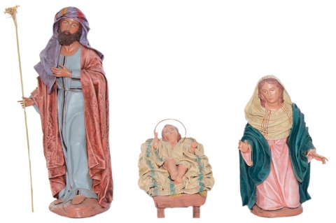 Nativity (without angel), made of clay and canvas.Available in various sizes.