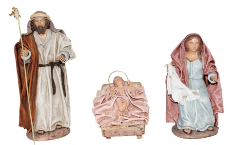 Nativity in 40 cm, made of clay with cloth canvassed by Master Craftsmen.