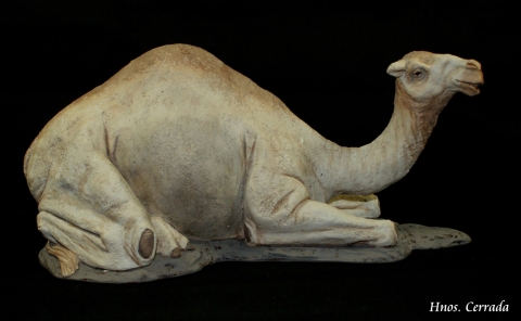 20 cm lying loaded white dromedary. Design by Hnos Cerrada. Made of ceramic paste.White or brown