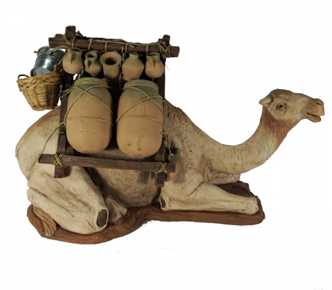 Dromedario tumbado cargado de 20 cm . Diseño de Hnos Cerrada. Realizado en pasta cerámica. Hay marrón o blanco