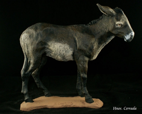 Burro para figuras de 32 cm. Diseño de Hnos Cerrada. Realizado con pasta cerámica y decorado con acrílico.